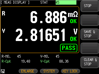 電圧と抵抗、最大10,000組の測定データの本体内バッファ蓄積によるログと統計分析のリアルタイム表示ができます。また確実な測定を提供するテストフィクスチャ接続不良検出判定表示があります![]() |